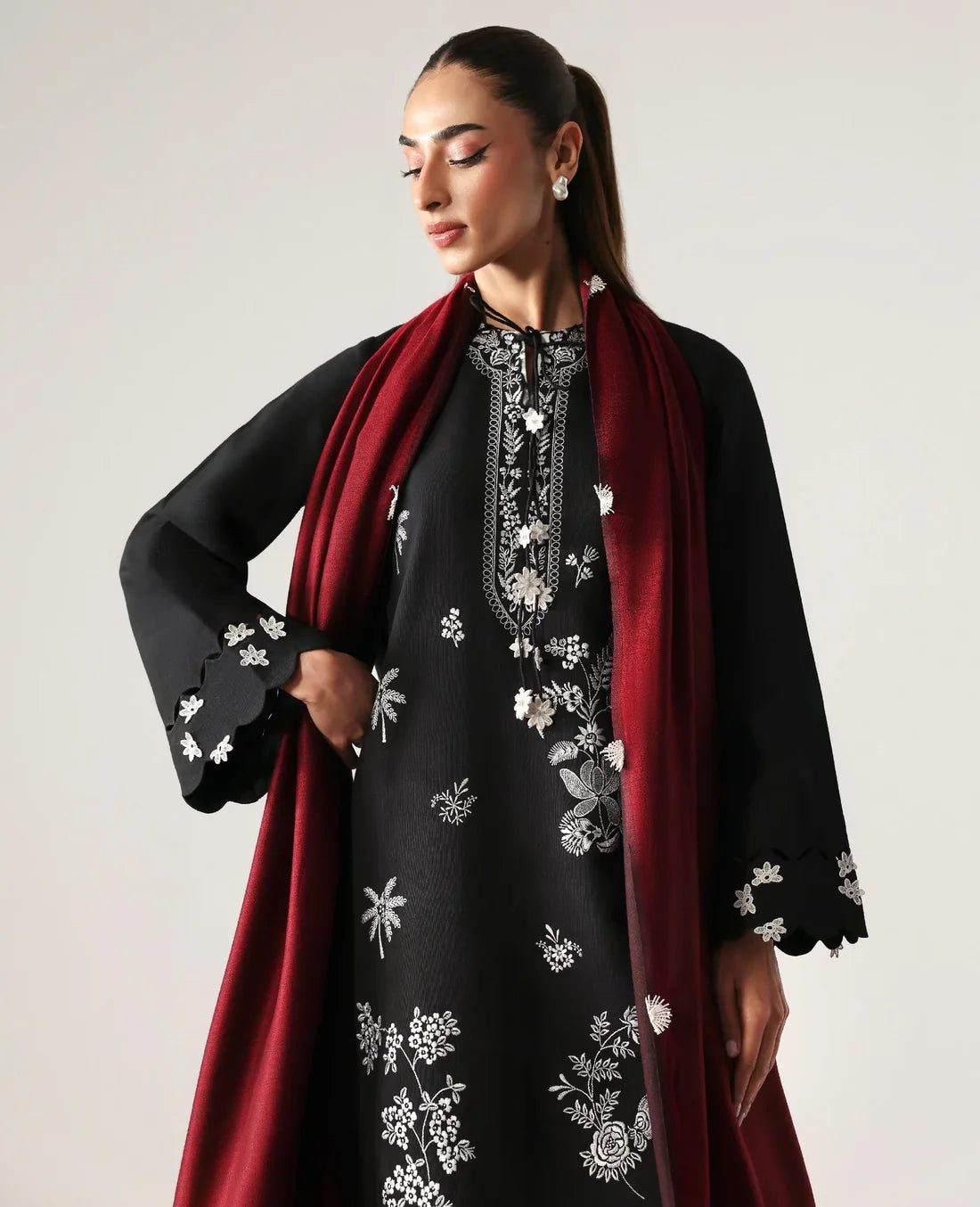 - Embroidered Applique work Chiffon Duppata